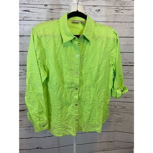 Green Linen/ Cotton blend Size 2 Excellent condition Sleeves will roll up with a snap cuff