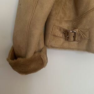 Chico’s Tan Faux Shearling and Faux Suede Leather Jacket Size Small