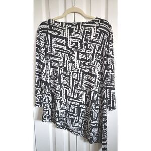 Chico's Travelers 2 Black White Geometric Asymmetrical Blouse Tunic Size 2 (L).