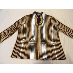 ChicosTravelers 3 XL 16/18 Faux Lines Leather Striped Jacket Brown Black White