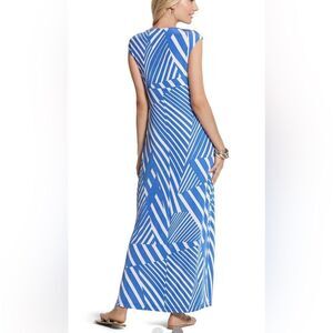 Chico’s Travelers Classic Blue/White Angled Stripe Maxi Dress. Stretchy Pullover