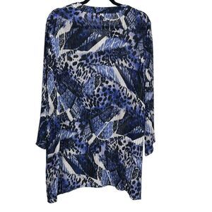Chico's Travelers Classic Geo Lepoard Jacket Button Up Stretch Mesh Sz 4!.