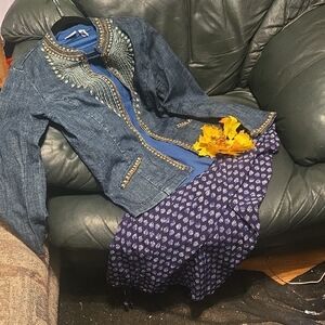 Chico'sTrio:Angelwing Tourquise Beaded Denim Jacket / Blouse/Pattern Pant