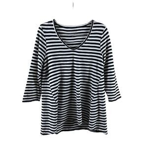 Chico's Ultimate Tee Modal Blend Slub High Low Striped Top Size 1 Medium B&W