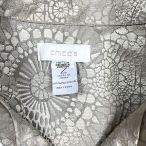 Chicos Women’s Size 2 Large Beige Button Front Jacket Floral Print Shimmer