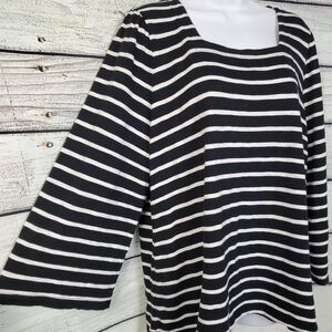Chico’s Women’s Striped Black White Long Sleeve Top Size 3 (XL) Cotton Modal Ble