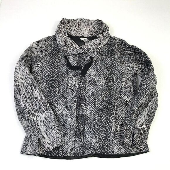 Chicos Womens Crinkle Jacket Snakeskin Print Long Sleeve Snap Button 0 S Small
