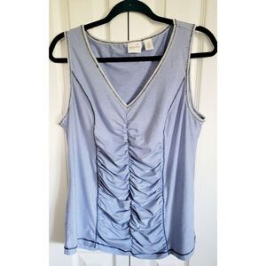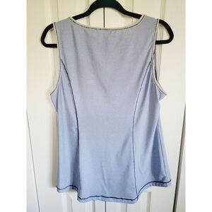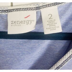 Chico's Zenergy 2 Sleeveless Tunic Top Size Large Blue White Striped Rouge Frnt