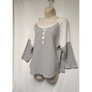 Chicos Zenergy Scoop Neck 3/4 Sleeve Cream/Black Striped Top Blouse 2 L(12-14)