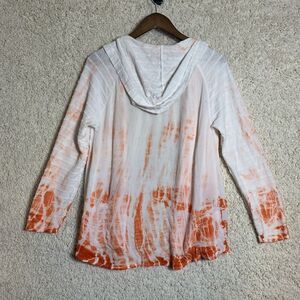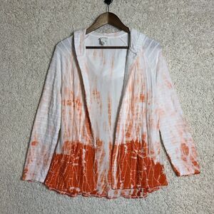 Chicos Zenergy Sweater Medium‎ Orange Tie Dye Open Hooded Cardigan Long Sleeve
