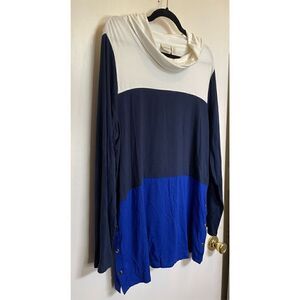 Like New Chicos Zenergy Colorblock Tunic size 2XL Clean colorblocked lines play perfectly to a cowl-neck styling in this simply-striking long-sleeve top.