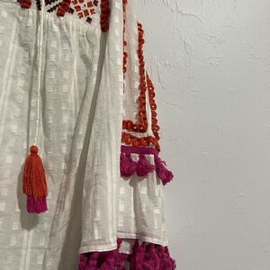 Chicos chambray top size 1p beautiful top has 2 spots where it has some stains shown in pictures but other then that in great shape
