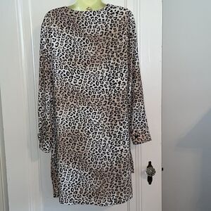 Chico’s leopard print split front double layer thin polyester long sleeved tunic or mini dress
