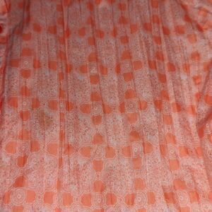 Chico's light orange and white pleated button down long sleeve shirt Sz 3 (16)