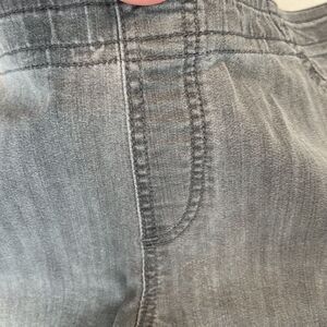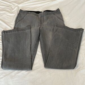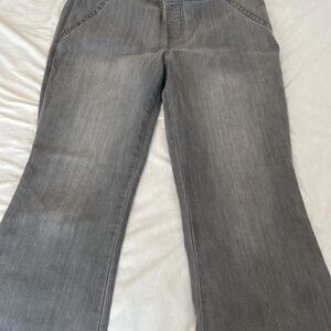 Chicos platinum sz 1 (M) grey distressed elastic waist stretchy flare jeans GUC