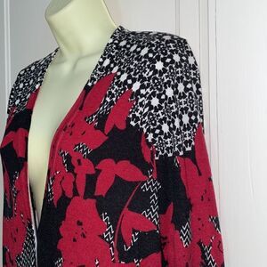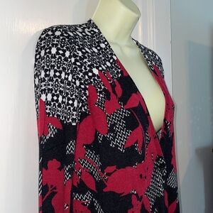 Chico’s red, black & white multi pattern thin cardigan sweater