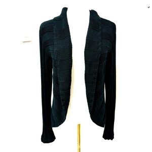 Chicos size 0 Small‎ 4 black open weave knit cardigan, long sleeves