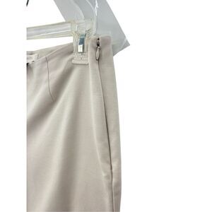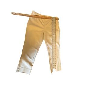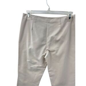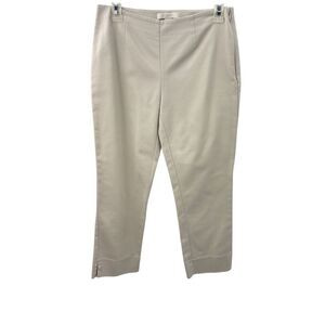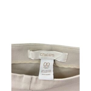 They have a classic and straight fit with a flat front design. There are slits at the bottom of each leg, likely for style and ease of movement. Side hidden zipper Chicos size 00 = 2
