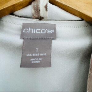 Chico’s suedes draped jacket leopard floral print beige, black and red and pink size medium (Chico’s size 1). Beautiful like new condition see photos for measurements and fabric content