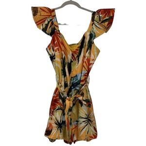 Chicways Floral Print Romper, Button Tie waist closure, Lined,Side pockets. EUC Approx measurements Pit to Pit 20.5", Length 31.5", Rise 3"