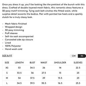 Chicwish Womens 3D Posy Mesh Faux Wrap Dress Size M