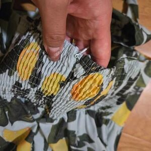 Printed with lemon all over on a minty hue, this maxi frock brings you into a fascinating summer scenery wherever you go. Match with a pair of roman sandals and floral headdress to create a romantic look for a lovely day.
