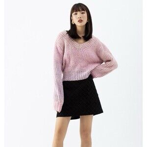 Chicwish Ombre V-Neck Knit Sweater Pink Size S/M Oversized Chunky Cropped