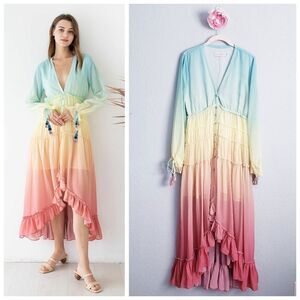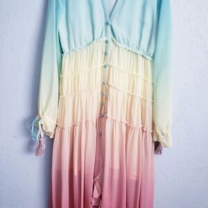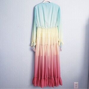 Embrace elegance with this stunning gradient maxi dress. Featuring a blend of soft colors, this dress is perfect for any occasion.