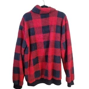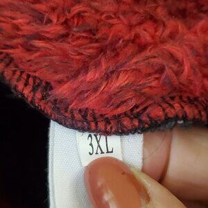 Chicyea Faux Sherpa Buffalo Plaid 1/4 Zip Pullover, Size 3XL. Red Black, Super Soft, Contrasting Material Patch Pocket, Ribbed Hems. Good Pre-Owned Condition
