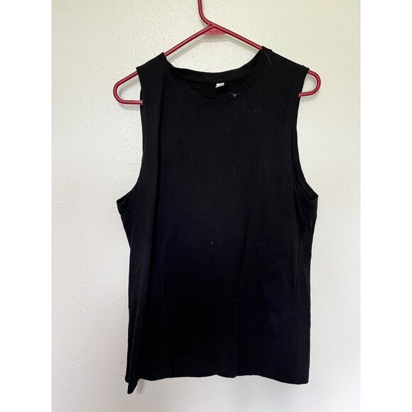 Basic muscle shirt style tank with writing on back Pit to Pit 21 Length 29
