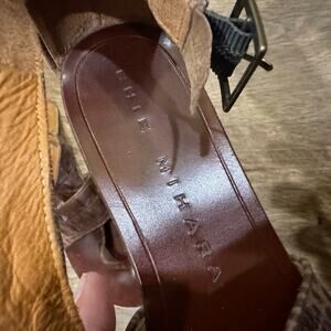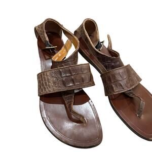 Chie Mihara Jonas in Cocoa Brown Faux Crocodile Leather Thong Sandals Size 7.5