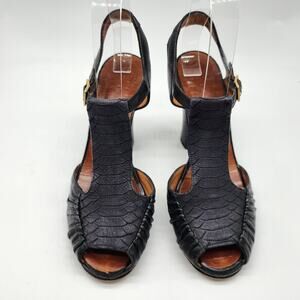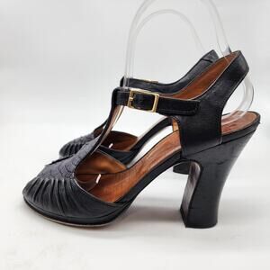 Chie Mihara T-Strap Peep Toe Heels Black Leather EU 37 US 7