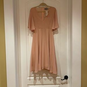 Chiffon Angel Sleeve Midi Wedding Guest Dress in Blush Sz 6