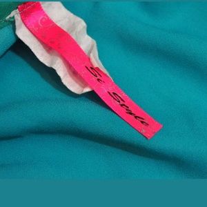 Boutique hi low tank top featuring black and white diamond pattern on front, teal green on back. Chiffon sheer 100% polyester material.