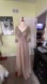 Measures 19 inches pit to pit and 60 inches shoulder to hem waist 17 inches. This is a size 14 but will fit a size 12 best. It is so so beautiful the lace appliqué is throughout the whole front and back of the bodice and sleeve. There is a built in cup and it is fully lined and made very well