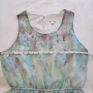 Chiffon Summer Dress Midi Sz M Pastel Watercolor Floral Roses Sleeveless Flowy