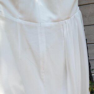 Light and flowy, dress is just above the knee length, with longer flowing chiffon attachment at hip.