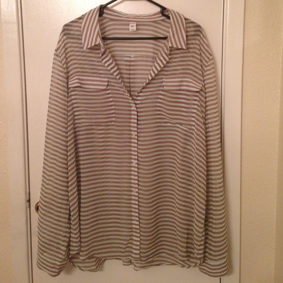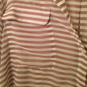 Turquoise and brown striped button down. Chiffon like feel. Only worn once!