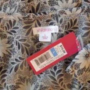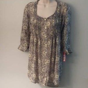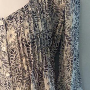 3/4 sleeve button down chiffon blouse and its pleaded at the bust