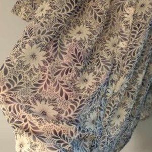 Ties in the back ,it's a creamy color with black flowers, semi share.