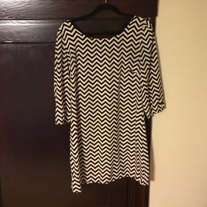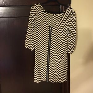 Black and cream chiffon dress. Worn once, bought size too big. Cute paired with belt also