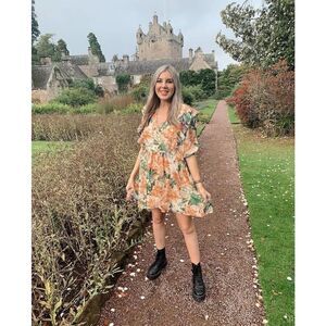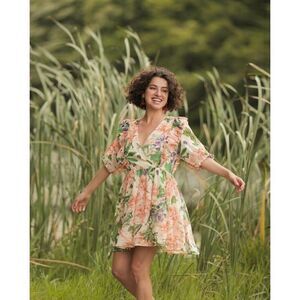 Chiffon Flower Print Dress Ruffles Wrap H&M