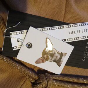 The chihuahua tag is cool. Fabric has a silky-fuzz cotton feel to it.