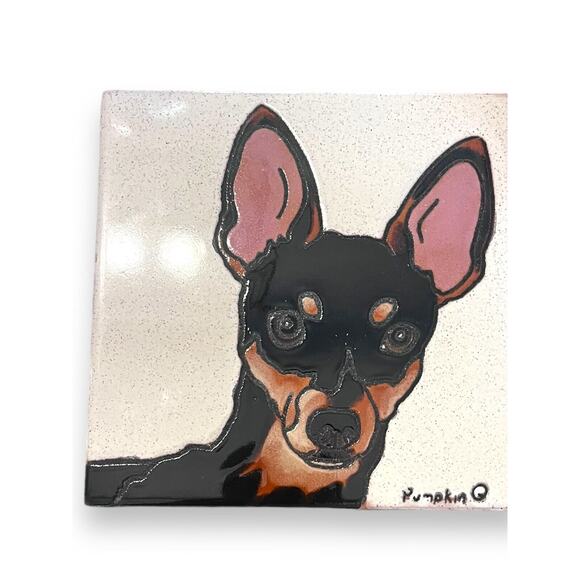 Chihuahua Dog Hand Painted Tile Trivet Artist Signed 6 X5 Inches