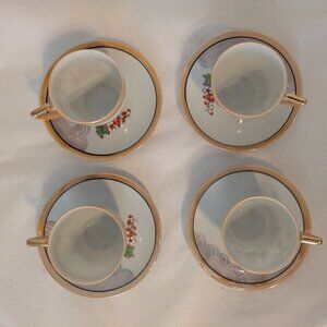 Chikaramachi Hand Painted Made in Japan Set Of 4 Cup and Saucer Vintage