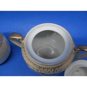 Chikaramachi Japan Vintage Covered Sugar And Creamer Set CHK3 Pattern Gold Trim You Will Be Getting 1 Creamer And 1 Sugar Dish With Lid. They Are Discontinued. Minimal Wear On The Gold Trim As Pictured. There Is A Small Chip On The Rim Of The Creamer Near The Handle. They Will Be Wrapped Carefully And Fully Insured. They Come From A Smoke Free Environment. Made In Japan