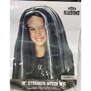 Child Costume Witch Wig Black w/White Streak Halloween Costume Play Party