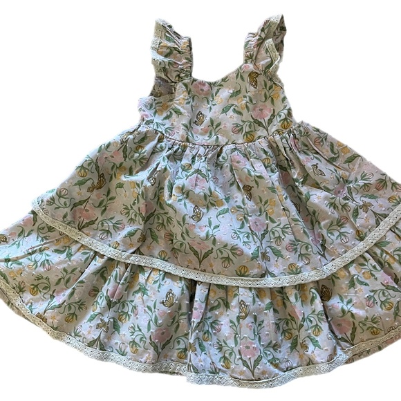 Child Garden Floral and butterfly tiered lace full skirt dress Cotton size 4
