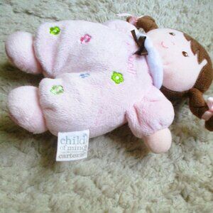 Child Of Mine By Carters My First Doll Plush Pink Embroidered Flowers 11"
