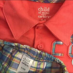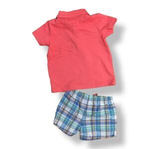 Child of Mine Boys Outfit Size 0-3 Months Orange Blue Baseball Polo Plaid Shorts